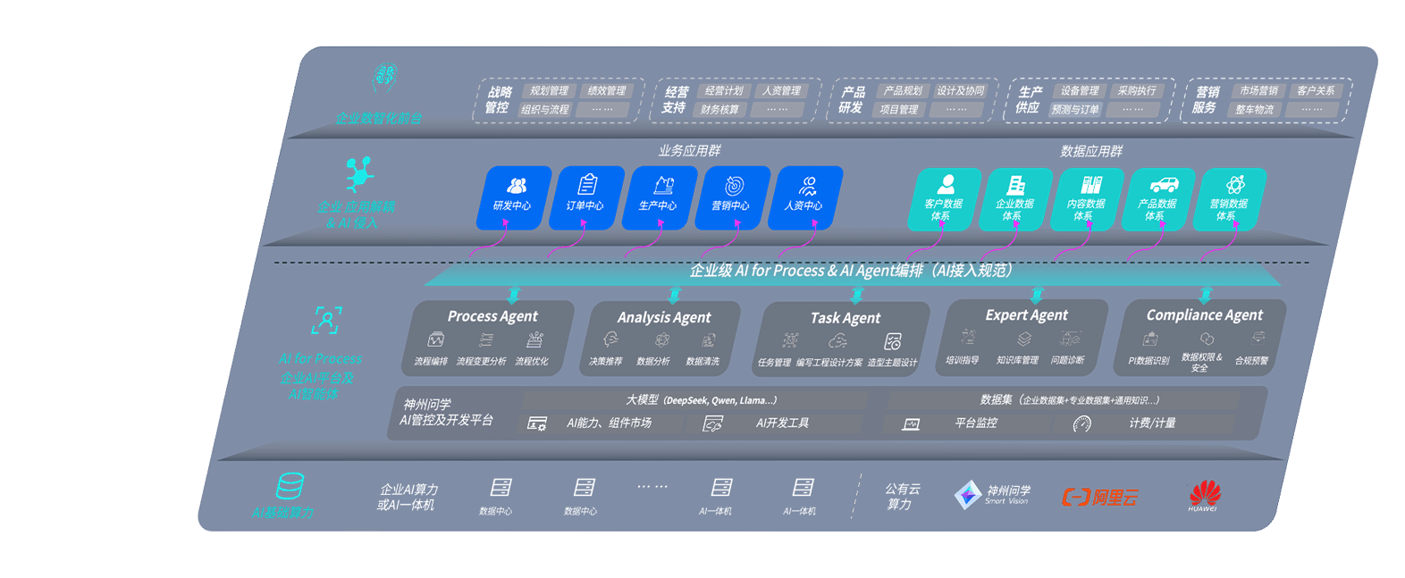 2017金沙集团问学智车解决方案是一套基于AI技术的汽车行业智能化系统,,,,覆盖从底层算力到顶层AI应用的全栈方案。。。。方案由算力层、、、、模型层和应用层组成:算力层,,方案支持多种一体机配置,,具备云端灵活部署、、多云适配以及动态优化计算资源的能力;模型层,,,,2017金沙集团问学平台版提供了企业级AI应用一站式构建与管理平台,,,,支持基于后训练强化技术的汽车企业专属模型的训练、、、评测和运营;应用层,,,,2017金沙集团问学DeepSeek版提供包括超级员工、、智能招采、、智能营销、、、、智能客服、、、、AI for BI等一系列解决方案,,可助力汽车行业实现数字化转型,,,,让管理更智能、、、、响应更敏捷。。